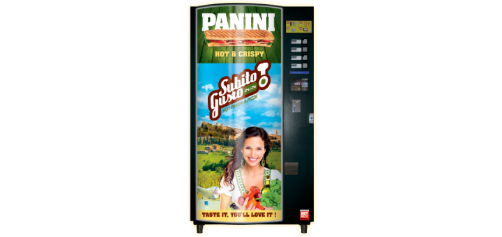 dOPPIO conçoit le logo, l'identité visuelle et met en pages l'habillage des distributeurs de Subito Gusto.